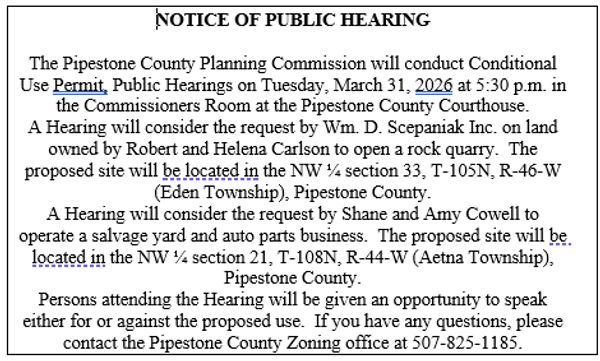 If you are looking for specific information, we ask that you please read the Pipestone County Data Practices Policy and make a formal request as explained in the policy for the data you would like to obtain.